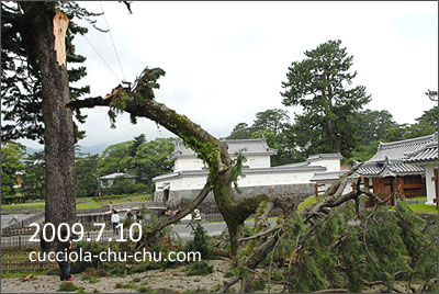 いろいろと自分が納得する場所を探すのだけど、 あの風じゃ、どこへ行っても音からは逃れられず、 仕舞には、ワタシが本を読んでいたり、パソコンいじってたりすると 足元や腕を「ガリガリ、ガリガリ」と何かを訴えてくる。 抱っこして、「ギュー」っとしてあげてても安心できないらしく また腕をすり抜けどこかへ逃避。 「早くやんでくれーーーーー!!」 飼い主は、切実に思う。 この日は、ニュースでも放送された、樹齢300年の小田原城の松が 「バッキリ」折れたほどの強風だったのだから、仕方ないと言えば仕方ない、、、けど。 以前もいろいろ記事にしましたが、ミースの根性ナシは日増しに増えるぅ、、、(-_-メ) 何でもかんでも姉ちゃんのまねっ子ぺっちゃんまでも、今まで怖くなかったくせに 急に「ピーピー、キュンキュン。」鳴いてみたり。 あんたたちーーー、もう!いい加減にしてーーー!! 2009/07/11(Sat) 14:52:52