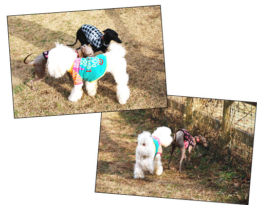 先週の日曜日のやどりきでっす ![]() ウレシイことにこのところお天気 つづき。天気悪ければ言い訳しながら家にこもってたいけど、 これじゃ出かけない訳にも行くまい。 まっ、この方は↑あんまり嬉しくはないようだけど、、、 ![]() 何やらやんちゃなフレブルちゃんが気に入ってくれたらしく ミースを追いかけまわす(何とも怖いもの知らず。) ミースに度付かれながらも追いかけ仕舞いには体当たり ![]() 怖くなったミースはパパちゃんに逃げ込み、 どうやらその際ミースに「がぶっ。」と来たらしく オットも指を食いつかれたらしい ![]() ハイパーもいいけど少し加減してね~ ![]() 今回も気に入った(一緒に楽しく走ってくれる子)子が 居なかったぺっちゃんはボール遊びでストレス解消 ![]() やどりきの前に私用で富士へ行き、その帰りに 御殿場にある「秘密のドッグラン」とやらへ 行ってみたのだけどだ~れも居なくてさみしいので 蕎麦屋で腹ごしらえしてから松田のやどりきへ 飛んだのでした ![]() ![]() 週明けからお天気悪そうなので、 明日もやどりきかなぁ~ ![]() ![]() 2009/02/21(Sat) 23:58:07