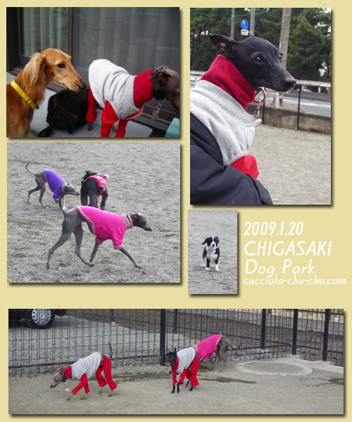 またまた遅ればせながらの更新ですぅ ![]() 先週 ![]() の日曜日。予定していた用事がキャンセルになり、急遽茅ヶ崎へ ![]() 行く途中でご近所のお友達に連絡 を取り、現地で合流そのお友達は、モカちゃん ![]() 彼女もミース同様、ドッグランなるもの好きくないレディです。 遊ぶのはペッキアのみ。 ランに来ていた一番大きいお友達。 ペッキアは何故だか、いつからか、大きい子が苦手になりました。 ちょっとでも匂いを嗅がれそうになると、「キャン!」と怖がりながら逃げ込み、まだ離れないと噛み付きそうな勢いで威嚇します ![]() 昨日のお散歩でもロットワイラーの子が気に入ってくれたみたいでずっとペッキアの傍を離れずにいたら、ペッキアは歯を剥き出しにしながら怒って ました。無理して近づけようとしてもパニックになってしまうので、慌てず恐怖を煽らず引き離します。 誰にでもフレンドリーだったのに、きっとミースの影響なの ![]() その逆で、ペッキアのおかげで日々進化中 のミーちゃんは、積極的に匂いを嗅がせてもらってます![]() でも相手が振り返って友好的態度を見せ始めるととたんに嫌がります。 みなさんも御承知でしょうが、何ともわがままな娘です ![]() 2009/01/18(Sun) 12:10:57