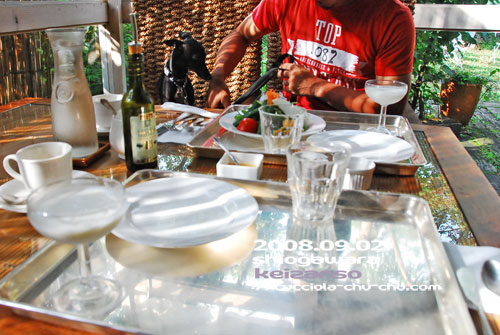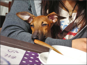 朝食はさわやかな木漏れ日のテラスにて、 アメリカンブレックファースト。 和or洋、スペシャルorライトと選べます。 我が家はオットがスペシャル、ワタシがライトに しましたが、ハムが付いているかいないかの違いです(笑 ガラス張りのテラスにはきらきらと降り注ぐ朝日。 みーちゃん、かわいっ♪ 食後の運動。 宿の裏手でちょっとひとっ走り。 2日目は宿から2時間ほど行った場所、日光・中禅寺湖方面へ足を延ばしてみる。 まずは『竜頭の滝』から。 男体山が火山活動の際噴出した溶岩が造りだした険しい岩肌を、全長210mにわたって流れ、途中から巨石を挟み2筋に分かれる流れの様子が竜の頭と竜のひげに見えることから名付けらた、、、らしい(^^ゞ 滝に沿った散策コースを歩き、マイナスイオンに癒された30分。 この子たちもマイナスイオンでリフレ~ッシュ! みーちゃん、いつも怒ってばかりだからストレスから解放されてね。 そういうワタシも、、、??? このあと、中禅寺湖を通り、華厳の滝へ。 しかし滝には霧がかかり真白。 辛うじて目を凝らせば「滝が流れてるわ。」って感じ~(爆 滝の側へエレベーターで下れるのだけど、ワンはNG。 まぁ!楽しそうだこと! みーちゃん、オットとだったら「るんるん 」しながら遊びます(¬ε¬)でも、面倒なのは、、、 ミース、ボールでは遊ばない。 「一緒に走ってくれなくちゃ、いや!」なのです。 オットと遊ぶのが大好きで良かったっ; ̄ー ̄A アセアセ・・・ 出来れば2頭で遊んでくれるのがイチバンなのだけど。 2頭とも遊び方が全然違うし、ミースはペッキアと一緒は大嫌い。 兎に角自分のペースを乱されたくないのです。 あ~、広々として気持ちよいところ~ ![]() 2日目の夕食はパエリアコース。 魚介の旨味、新鮮なお野菜の食感、とってもおいしかった。 この他にお豆のスープ、鹿肉のハンバーグ、デザート。 もちろん、ビールにワインもねっ(爆 2008/11/09(Sun) 23:11:02