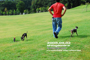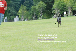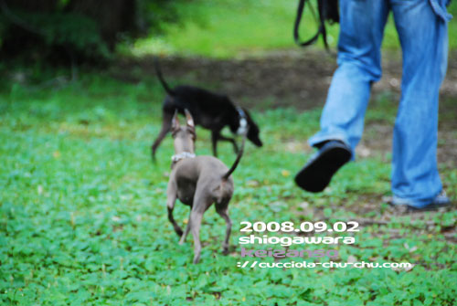 まさしく遠足日和。 紅葉にはまだすこーし早いようですが、 色づき始めた樹木が秋を感じさせますね~ ミースの正面顔撮るのって結構大変なの。 カメラは構えず名前を呼ぶとこちらを見るのだけど、 カメラを構えるとそっぽを向く。 いつまでたってもこれの繰り返しーーー(-_-メ) 黒い子にはバックの黄色が効いてるね(^^)b ぺっちゃんは自由自在にコントロールできるので 写真撮るのも、早い早い! しかし、、、 2頭ともよく見れば、「どこ見てんのぉ~~~!!」 って言うくらいあらぬ方向へ目を向けてたのね(-_-;) こちらののあろま~じゅは勿論目線はkaoriさん(^_^)v やはり、飼い主の違いなのかね~(; ̄ー ̄A アセアセ・・・ JUNOたんお気にのたまごちゃんぷにゅぷにゅバージョン(笑 「これはだれにもわたちまちぇんよー!」(J お山でかけっこしたり、ボール遊びしたり、 お山をたくさん歩いて遠足(人間の子供の)や ハイキングのひととたくさんすれ違いながら ランチに行って、またたくさんお山を登って、、、ゼエゼエ(^^ゞ 恒例のランチタイム&ティータイムは後ほど~(^O^)/ 2008/11/13(Thu) 18:04:27