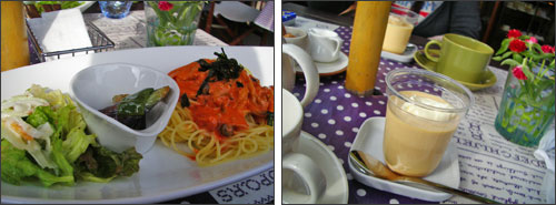 本日のスープ、かぼちゃのポタージュ ![]() 甘過ぎず、よいお味~!に満足 ![]() コチュジャンのトマトクリームパスタ なめらかプリン(激うまっ )「どうせあたちはいただけないのよね。ポツリ 」 JUNOたんは、抱っこされぽかぽか陽気にねむねむ。 食べてるあいだ中うるさいのはおネエたちだけだね(-_-メ) あろま~じゅからのいただいたお弁当、ネックローストおいしかったよン ![]() さてさて、食後は町中をぷらぷらしながらまたまた来た道を再び~ ![]() 戻る途中、佐助にある甘味処「みのわ」のお庭で、またまたお茶タイム(爆 ワタシの注文は、「抹茶じるこ」 塊のあんこ(つまり、おはぎや、大福、羊羹などなど。)は、 苦手なワタシだけど、不思議とお汁粉はへっちゃら。 それにお抹茶の苦みで、「これいけるぅ~ 」あろチン。 (うん、やっぱりチビコは動いてるぞ!笑) JUNOたん。 紅葉が真っ赤になった頃に再度チャレンジしましょっか(; ̄ー ̄A アセアセ・・・ PR 2008/11/16(Sun) 16:31:28