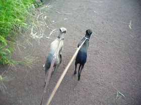 最近、日が昇ってきてからでも暑くなくなって(と言うか涼しい。) 来たので、朝散歩も気持ちがいい♪ 夏真っ盛りの頃は、あまりにも早くに家を出ないと暑くなって しまうので、朝散歩は殆ど休止状態。 こうやってカメラを持って朝散歩するのも久しぶりすぎ。 お花もたくさんきれいに咲き始めるこのくらいの陽気、 春先から少しずつ暖かさを感じる陽気がイチバン好き☆ 朝日を浴びて光合成でもしそうな雰囲気のペッキア(爆 お耳がスケスケ~(^▽^;) 珍しく2頭並んできれいに歩いてまっす! ワタシはこう言う風に寄り添っているのを見るだけでうきうきうるうる(*T-T*) ペッキアたん、夏の運動不足が祟ったのか! お尻がむっちり、、、。 何だかオンナっぽくなり過ぎちゃってちょっとキモイ(ー"ー;) 体重も生まれて初の4.0kgJUST突入!! こんなちびスケたちの200g・300gって相当なお肉ちゃんだろうな。 さて、食欲の秋ならず、ダイエットに専念せねば。 2008/09/26(Fri) 09:07:44