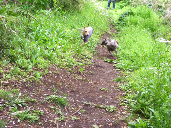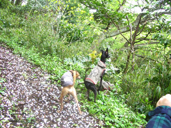 今年になって初めて、アロちんと鎌倉デートして来ました(^^)b まっ、それでもかれこれ数回会っては居るのだけど。 こうやって爆走&山歩き探検は久々。 よくこうやって遊んだのをちら~っと思い出して ちょっぴり思い出に浸ってみたり。 副隊長も一緒にかけっこしてくれていたよね、きっと。 隊長の後へ続けーーーっ!!のちっこいお尻が3つ。 ミースも単独行動せずちゃんとみんな一緒です。 それ行け~!! 「ママちゃ~ん。」(P なペッキア。 アロちんを待ち構えるペッキア。 久々のオーガニックサラダバーを堪能したり(笑 (この後カフェにてミースは食べすぎで吐いたけど。) 景色を?覗いてみたり。 狭い山道を爆走してみたり。 (ペッキアあまりに見境のない爆走っぷりで、どこかにぶつけたか 引掛けたらしく小さい傷だけどえぐれてしまった。) この子に救急セットは必需品、と実感! 今日はたくさん走れてペッキア満足♪ これだけたくさん一緒に走ってくれる友達はアロちんだけかも。 他のイタさんも走ってくれるけど、ペッキアの本気走りに長々お付き合いしてくれる子は殆ど皆無。 ペッキアもアロちんに嫌気さされないようにほどほどのしつこさでね(爆 予想されていた雨も帰宅するまでもってくれて良かった。 山遊びはいいね~(-。-)y-゜゜゜ 2008/04/17(Thu) 18:24:29