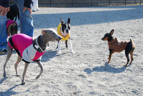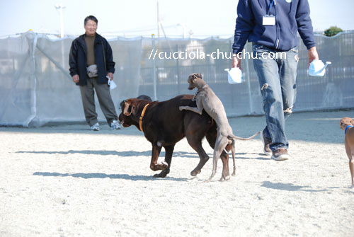 やっとオープンする事が出来たドッグランへ行ってみた。 思っていたより結構広い!! 今は大きいドッグランに大型犬~小型犬まで一緒の場所だけど、 小型犬用、超小型犬用、ベンチ、夜間用のライトまで、と少しづつ 手を入れていく予定らしい。 「さー、みんなでかけっこちよーーーーっ♪」 ペッキアさん、走る気満々、ボストンちゃん、横目で「チロッ」(^^; 久しぶり~、のペンネちゃん。 モカちゃん、いつもと打って変わってテンション高し! 「ボールほちい?」 「んじゃ、かけっこちよ♪」 チャレンジャーな、「ちーちゃん」ことアンジェロ。 大きい子ばっかり狙い、一度引っ付いたら走りながらでも くっついていく粘り強さ(爆 「はしってたら、フードがおちてきちゃいまちたぁぁぁぁーーーー!」 「一応、あたちも居るのよ。」 PR 2007/11/27(Tue) 11:27:37