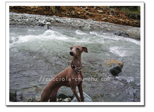 大好きな公園にお散歩しに、、、。 何だか気分の良いワタシは、お弁当作っちゃおっか~♪と しばし仕事に出たオットが帰る合間にいそいそ仕度に 取り掛かったのだが、ワタシの予想より早めのご帰宅に 少しづつペースが狂い始めた(-_-;) 作り終わる頃には暑いし、急がなくちゃ、おちびたちは ひとの足元でちょうーだい攻撃でちょっとイライラ(-"-) まっ、でも何となくおいそうなお弁当に仕上がり(おにぎりは 梅干のみになったけど...。)ささ、お出かけ。 台風明けでもかなり清い(いつもよりは少々濁っていた ようだけど。)マイナスイオンたっぷりの川に癒されてる ミースは益々おっとりマイペースに拍車か! 川の流れが早いこの日は、さすがのMPも遠慮がちで、 ミースはオットのお膝を陣取りっぱなし。 まっ、いつものことだけどぉー(笑 さすがにこの子はジッとは出来ず、川に入るのは ためらっていたけど、ちょろちょろ動きっぱなし。 ペッキアにはマイナスイオンは全くもって効果なし(-_-;) うわっ、突進してきそう!! 鳥のようなこの花、なんて言う名前か知ってますか? 2007/09/10(Mon) 15:06:09