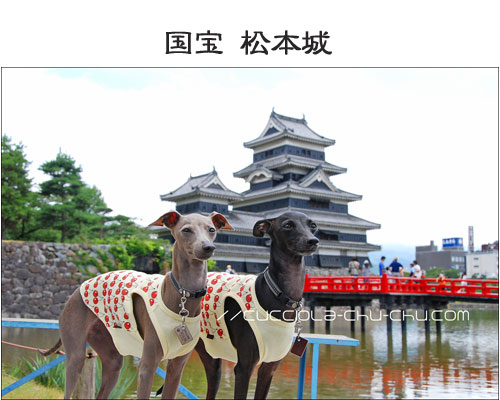 チェックアウトし、ホテルを下った直ぐそばにある 「国営アルプスあずみの公園」へお散歩がてらに行ってみた。 夕べ降った雨は跡形も無く、植物にほんのり雫が残ってるだけ。 きちんと整備された公園は自然もたくさん残っているし、 たっぷり歩けてとてもいいとこ~o(^^)o 昨日の「烏川公園」といい、こんな気持ちのいい場所で お散歩が出来てうれちーーーっい♪ ディスクゴルフ用のフリスビーがたくさん置いてあったのを、目ざとく見つけ、遊びたがるペッキア。 「分かった分かった、ちっとだけだよ。」とか何とか言いながら思いっきり遊んでしまった(;^_^ゞ こんなに広い芝は「どうぞどうぞ、遊んでってください!」って言われてるようなものだ、、、仕方ない(苦 やっと撮れたツーショット。 もともと「一緒になんて撮るのやだーーーっ!!」のふたりを暑い中並ばせたり座らせたりがメンドクサイしぃ、、、で、「まっ、近くに居るとこ撮ればいちおツーショットじゃん♪」とごまかしごまかし自分に言い聞かせ(^^; たっぷり歩いた後は、お目当ての(入園した時すでに目をつけていたのだ。)りんごソフト。 ソフトと言うよりシャーベットがなめらかになったような感じ。 たっぷりなりんごの味が何とも言えず(^^)b おちびとオットにもお裾分け。 ペッキアはあまりの冷たさにおっかなびっくり、ちょっと舌で触っては引っ込めての繰り返し(笑 堂々の風格、さすがの女王は遠慮もせず舐めまくり~。 松本ICへ向う途中下車は「松本城」 ワタクシ1年振りにまた来てしまいました(^^; 参照:HPのアップ情報@長野旅行 とーぶん、いえ、もう2度と来ないだろうなぁ~と思っていたのだけど。 「また写真でしゅか?」と 顔を覗かせ、待っていてくれてる?ペッキア。 暑いから日陰で休んでるだけか。。( ̄○ ̄;) 松本城そばのおみやげ物屋さんの休憩所で、「野沢菜」「切り干し大根」のおやきでお昼ごはん(^^; お茶はサービスなので何杯でも...(笑 これで旅行も終了、家路に向います。 ......と、その途中に、おやきで済ませたお昼ごはんの穴埋めに、沼津に出て漁港そばのお寿司屋さんで夕食を、、、と言うか、お寿司を食べる為におやきで済ませたというか(;^_^A それで、本当に終了です。 帰りは今回の旅行で初めてワタシの運転で~(爆 ................................................................................................ 他のお写真、左にあるスライドギャラリーにて近々アップします(^^; 2007/08/29(Wed) 15:00:41