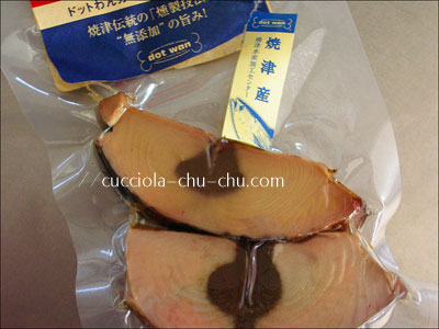 先日ドッグフードを注文したらおまけにくれたのですが、 読んでビックリ!! その名も「カツオ薫りステーキ」。 産地限定の「焼津産」、保存料・添加物を一切使用しないグルメおやつ。 真空パックを空けた瞬間、燻製のいい香りが~。 思わずかじってしまいました(^^; わんおやつも食材や技法、産地にまでこだわる本格派が増えてきましたね。 今や人間の食べ物だって、牛肉を牛肉以外の肉にすりかえる 偽装があるくらいですから、何を信じればいいの?状態ですが、 大事な家族ですから、安心、安全、は絶対です。 それにしても、これは人間の酒のつまみだね。 お座りしているミースをバックに写真を撮るはずが、 「きゃあ~、なんていい香りなのぉーーー!!」と 目の前の誘惑に勝てず、 「カプッ♪」(爆 2007/06/25(Mon) 16:22:46