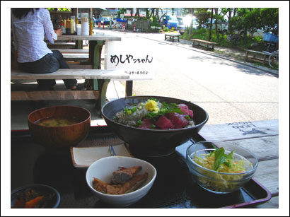 最高に天気が良くなった。 出掛ける時、結構天気には恵まれる。 (洗車したときは雨が多いけど。。) 「そろそろ潮風も気持ちいいだろう!」 と言う事で(自分ちも海に近いけどね。笑)、 テラスの喫煙席をワン連れに 開放してくれている一般のお食事処。 「めしやっちゃん」 逗子市小坪5-9-1 11:30~14:00(ラストオーダー) 17:00~20:00(ラストオーダー) テラス3テーブル12席のみワンOK 定休日:毎週水曜 ワタシは基本的にこう言う食事がダイスキなので ここは大のお気に入りになりました♪ ワタシのオーダー、マグロの竜田揚げ定食(=^m^=) どんぶり飯、「ぺろっ。」と完食ぅ~(((~_~;) お座敷もありますよ~。 お刺身のつまみで、お酒でも一杯、、、って感じ(;^_^ゞ この日は中のテーブル席は、ご老人会の方々が ゲートボール帰りにお食事だったらしく満席! お年寄りにもやさしいお料理なのでした。 ぽかぽかの日光浴付きのテラス席です(^^) これなら寒がりのイタさんたちも多少は満足? 帰り際、みなさんお店をバックに記念撮影。 ...って全然みなさんカメラ目線じゃないのに(((~_~;) さてさて、お腹もたっぷり満足したことだし、 次行ってみましょーか。 つづく...。 PR 2007/04/28(Sat) 16:29:01