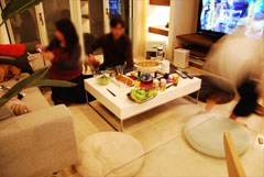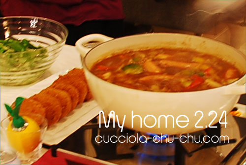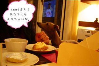 先月の24日、のあろま~じゅ家のみなさんと我が家にて。 ほかほかでスパイシ~「カレー鍋」 我が家結構お気に入り♪ 最後にごはんぶっ込んで、パルミジャーノをどばーっとすれば いちばん大人しくしていたのはアロちん。 ペッキア&ジュノは走りっぱなし。 ミースは食べ物狙い。 三者三様、思いはそれぞれです。 差し入れに持って来てくれたカリカリシューのシュークリームと ふわふわのチーズスフレ、おいしかったですぅ♪ ミースに影響受けまくりのペッキアも、食べ物に興味津津。 手に持っていると「ちろっ。」と舌先で触ってみたり。 まっ、ミースと違って黙って盗みはしないけど~(^^ゞ みなさんも良かったら遊びに来てくださいね~(笑 2009/03/02(Mon) 23:55:36