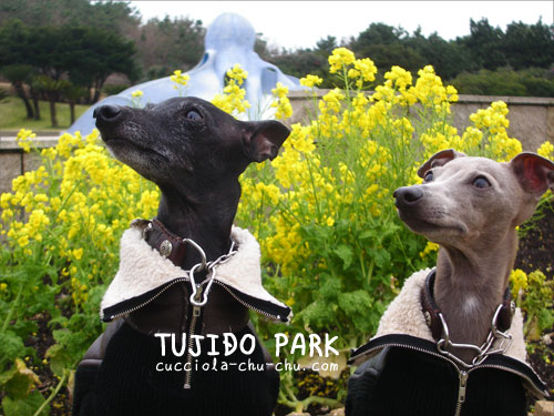 あるぽかぽか陽気の、、、、2週間くらい前の(^^ゞ 日曜日。 ふらりと横浜へ。 かなりの、、、いや、、、すんごい人出。 こんな天気の良い日はみんな外に出たくなるんだよね。 駐車場に着き、降りようとしたところで冷や汗。 やばっ!、、、リード忘れた!! 先日車が替わったので予備のリードやら何やらは、みーんなガレージの中に 置きっぱなしーーーー(-"-) 急遽、「犬茶屋本舗 元町店」にて手頃なリードを購入。 あんまり今日の感じに合わないけど、、、、まっ、いっか。 で、ワン連れで入れるところは満席だろうし、待つの面倒だから、 中華街で肉まんやらフカヒレまんやら数種類購入後、 山下公園で軽めのランチ。 ぶらぶらお散歩しながら、大桟橋まで。 珍しくミースがカメラ目線。 あっ、やっぱ横向いた。 呼んでも見ません。 「ぐ、、、ぐるじーよぉ、パパちゃん。」 あんまりこちらを見ないから、オットが向けようとして 首つりになっちゃったのかしら~(~_~;) 元町では、3.4kgのちっこいイタさん。 山下公園で3頭のイタさんを見かけました。 歩いている人ががすれ違いざま、 「あの犬、今流行りなの?」 だって。 別に流行で飼ったわけじゃございませんけど~(笑 PR 2010/05/04(Tue) 21:59:05