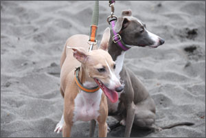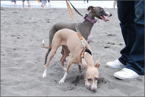 遅ればせながら、海水浴場の海開き&海の家の開店。 浜には安全祈願の神主さんや神輿が出てちょっとしたイベントです。 「あたちたちも海で遊びまちゅ。」(MP 意外と海好きのミースに、意外と海を怖がるペッキア。 普段のイメージからは全く逆ですぅ(~_~;) ミースは波と戯れ、 ペッキアはどこでもおなじみ、ボール遊びに夢中。 ただ監視活動が終わる17:00までは海 に入れるのは禁止。「プリシラちゃん」と「ニョッキくん」 ペッキアよりも若いおふたりです。 ボール遊びが大好き。 2頭で各自自分のボールを一生懸命 取りに行くのを競い合っていました。 あまりボールに興味のないプリシラちゃんはボールを取りに行くペッキアを追いかけ、楽しんでたみたいです。 おチビたちを遊ばせた後のお楽しみ 、、、はつづく![]() あっ、これ先週の日曜日のことですぅ(笑2009/07/17(Fri) 16:04:19