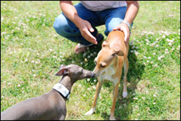 いえいえ、そんな事全然気にしないでください(^^; ミースは最近、黒毛が日に焼けて赤っぽくなっているので全体的に そう見えるようになってしまったのだろうと思います(^^) イタグレカラーの呼び方(特にレッド・イエロー・イザベラや グレー・ブルー)はホントにさまざまです。 ペッキアもそら君と同じ色の部類に入りますが、そら君はきれーなブルー、 ペッキアは少々フォーン傾向が強いようです。 文字で書くと何種類か分かれますが、ホントはみんな微妙に違うのも イタグレの特徴ですよね(^^) こちらこそよろしくお願いしま~す♪ Re:無題